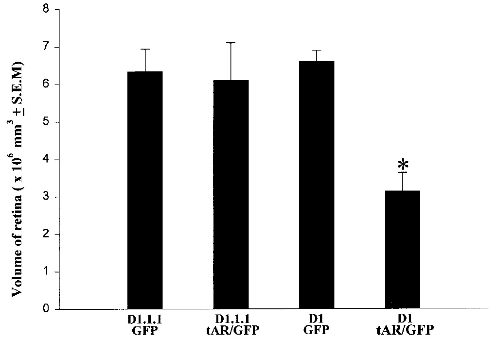 into D1.1.1. The affected D1.1.1 progeny populate the retina in a