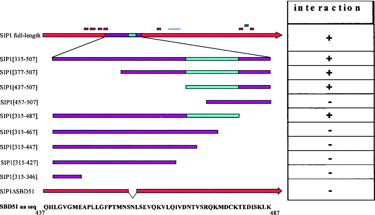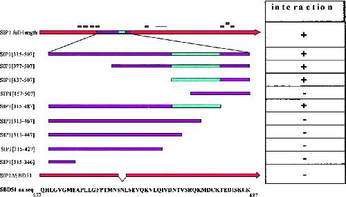 indicates the domain essential for interaction of SIP1with the Smad MH2 domain (SBD). SIP1 cDNAs used in this study are indicated (SIP1
