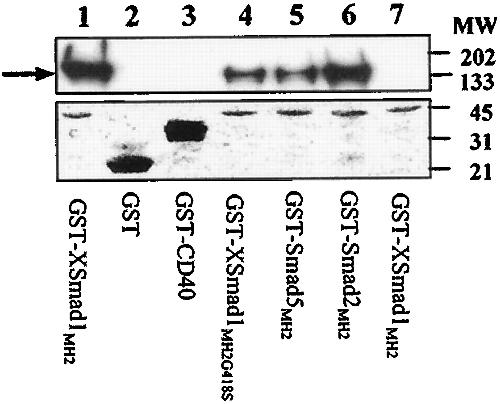 included the MH2 domains of XSmad1(G418S) (lane 4), mouse Smad5
