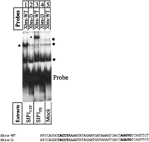 FIG. 7. SIP1 binds to the Xbra2 promoter. Fifty pg of 32P-labeled