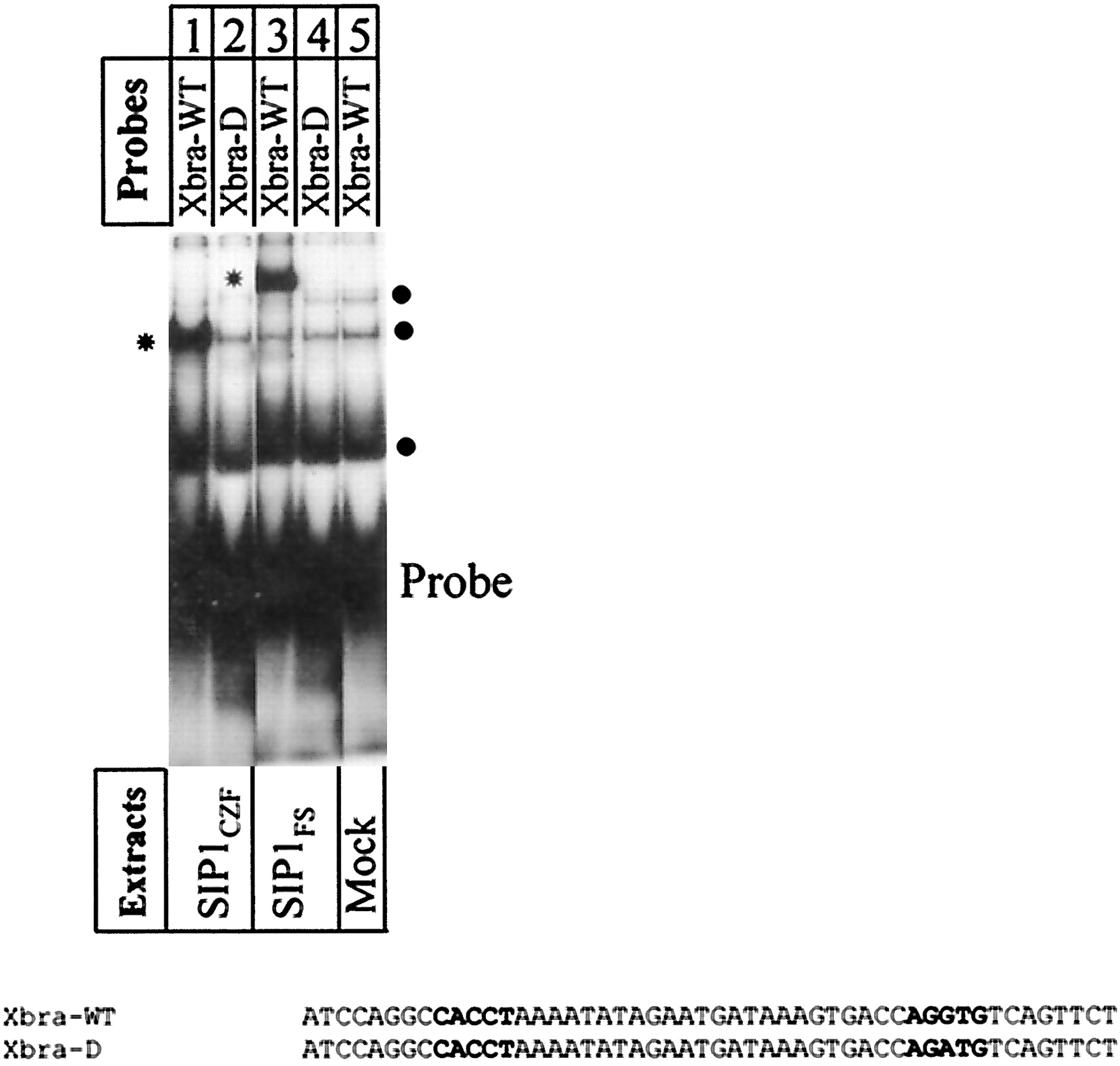 complexes (l). Xbra-WT probe contains the sequence 59-ATCCAGGCCACCTAAAATATAGAATGATAAAGTGACCAGGTGTCAGTTCT,