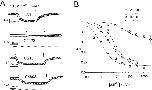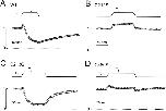 Figure 4. Temperature dependence of macroscopic current. The temperatures T1 and T2 were (°C): (A) Wild-type ClC-0, 22.0 and 28.7 . All current values were normalized to the amplitude of the first data point and the dotted lines represent the zero-current level.