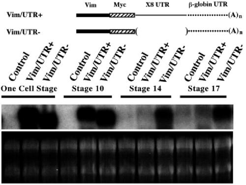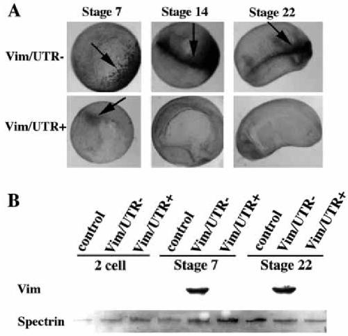 transcript in developing embryos. (A) Vim/UTR+ or Vim/UTR-