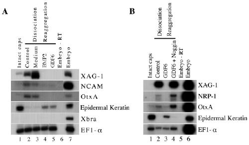 at this stage in animal caps, GDF6 is downregulated in the dorsal