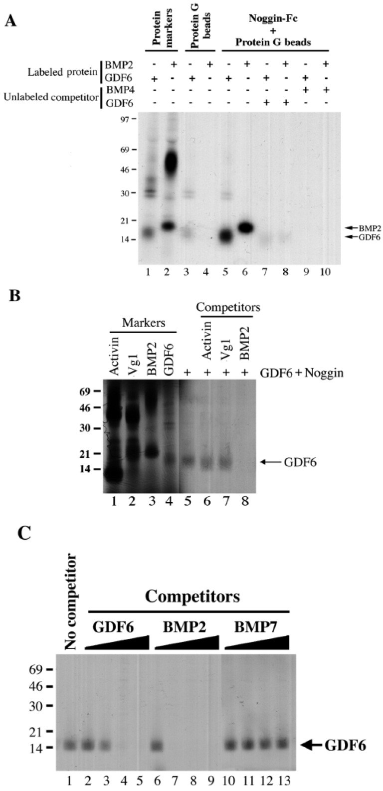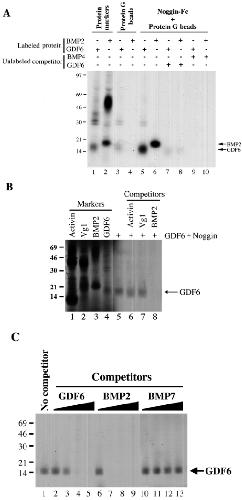 GDF6. Binding of 35S-labeled GDF6 to noggin is competed away by