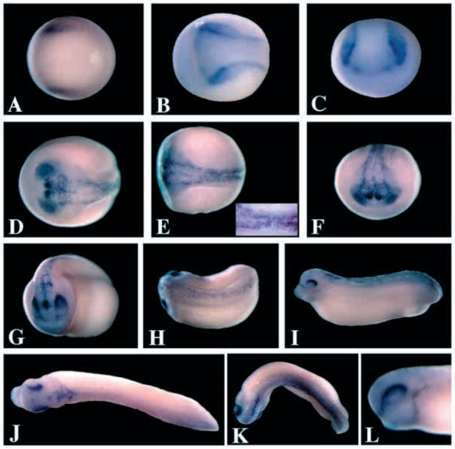 well as in two patches in the anterior neural plate. (D-F) At late neurula stages 18-