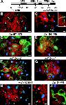 Figure 9. Sequence specific patterns of cellular distribution of Axin mutants. FL and various mutant forms of Myc-tagged Axin were expressed in Xenopus embryos and localized by IF (green) on frozen sections. Diagram of Axin molecule. (B and C) FL and AxΔ251-351 localized preferentially to spots or clusters of spots (arrows). Variable membrane staining was detected in some cells (B and insert C, arrowheads). This pattern was found for all constructs containing both NH2- and COOH-termini. (D) Diffuse cytoplasmic distribution of Ax497-672 found in most constructs lacking the NH2 terminus. (E) Example of a mutant (Ax194-956) showing a cytoplasmic, but somewhat particulate, distribution with some weak enrichment at the cell periphery (arrowhead). Partial cell surface enrichment is characteristic of mutants lacking the NH2 terminus but with intact APC and GSK3β-binding sites. (F and G) Constructs containing the NH2 terminus but lacking the COOH terminus, such as Ax12-672 and Ax12-531, are mainly localized at the plasma membrane (arrowheads). Some intracellular punctate staining is also observed (arrows). (H) Localization of AxΔ352-631 mimics the punctate staining of FL Axin (arrows). (I and J) High magnification views of punctate staining (I, AxΔ352-631) and membrane staining (J, Ax12-355). Bars: (A–G) 20 μm; (H, I, and insert B) 5 μm. |