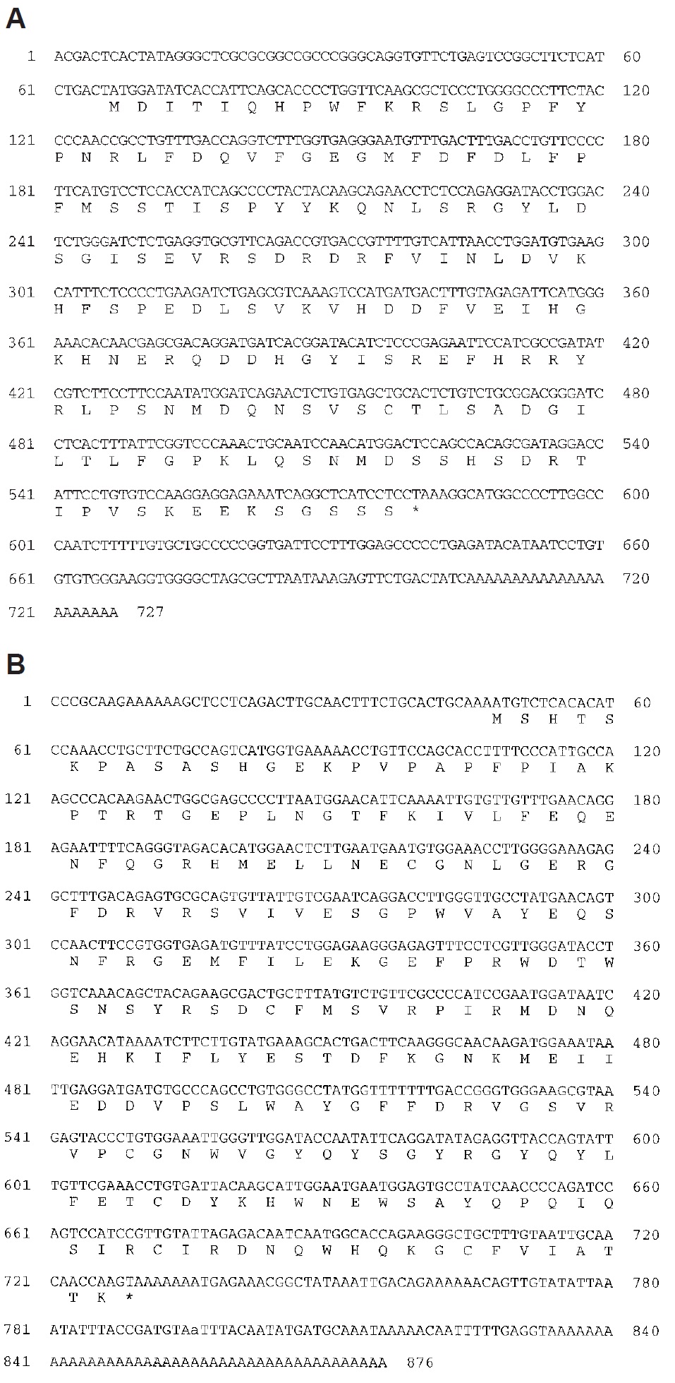 Fig. 1A, B Nucleotide sequences of isolated cDNAs encoding