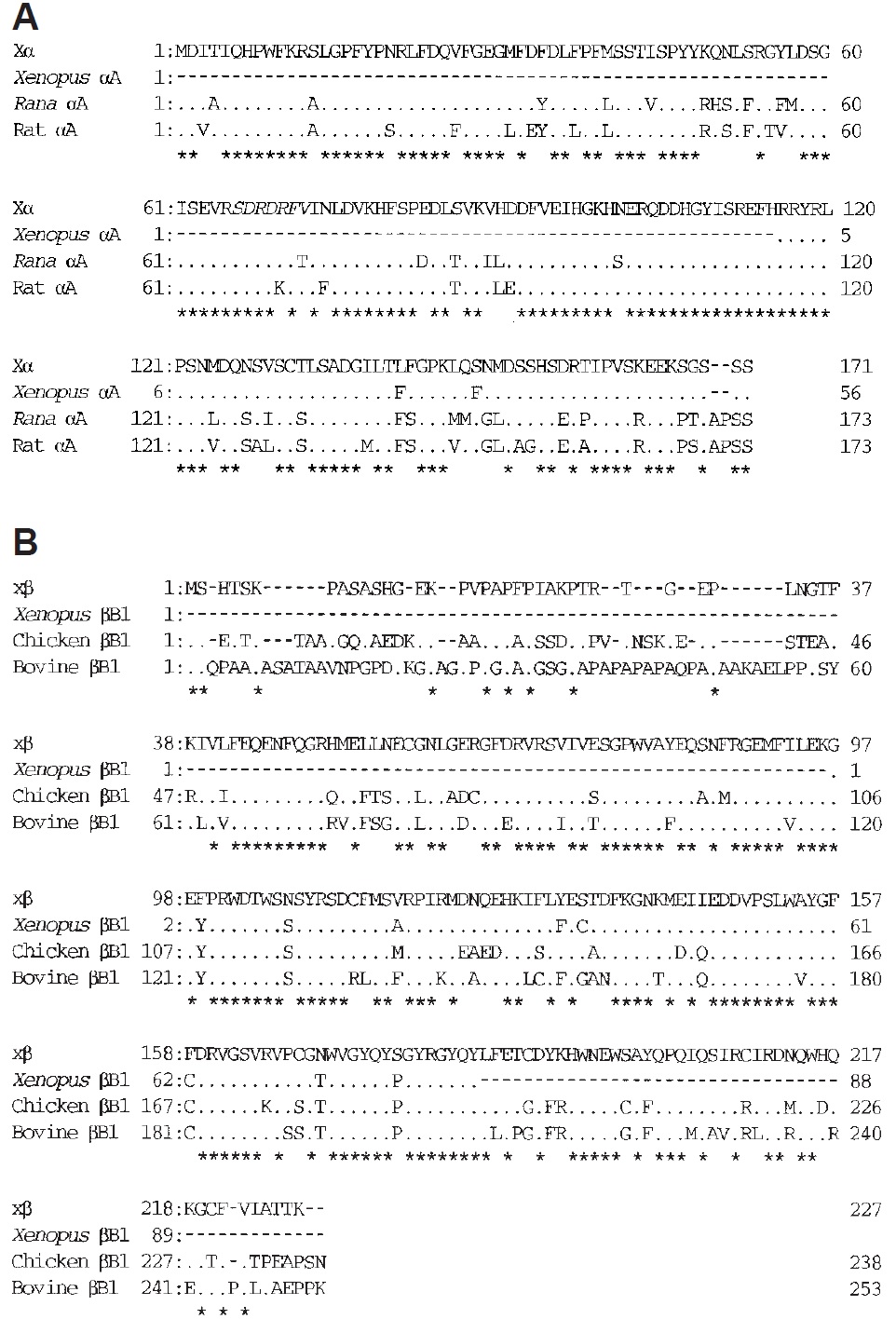 Xenopus crystallins. A αA-crystallin. B βB1-crystallin. The deduced