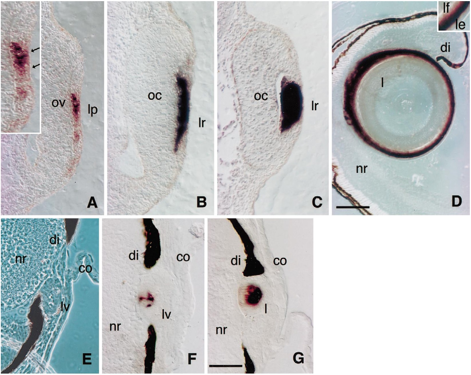 of Xenopus embryo (A–D) and the regenerating lens (E–G)