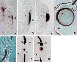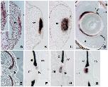 Fig. 4A–H In situ hybridization of sections through the eye region