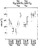 Figure 14. Box plots of rate constants for the C0 ↔ O1 ↔ C2 scheme. Box plots of the k01, k10, k12, and k21 rate constants for the C0 ↔ O1 ↔ C2 from 14 different patches. Values for the rate constants were determined by HMM analysis. The horizontal line within each box indicates the median of the data, boxes show the 25th and 75th percentiles of the data, and whiskers show the 5th and 95th percentiles. Extreme data points are also indicated.