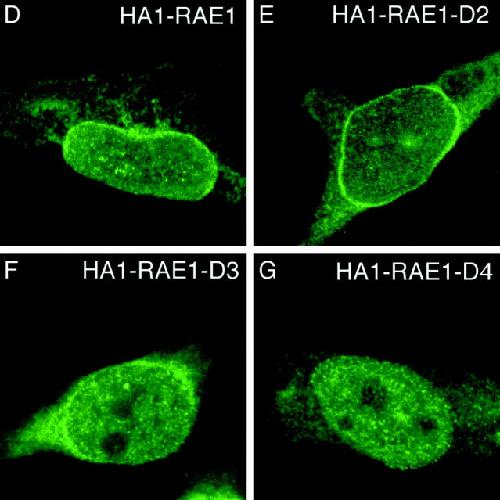 The human RAE1 gene is a functional homologue of Schizosaccharomyces pombe rae1 gene involved in nuclear export of Poly(A)+ RNA.