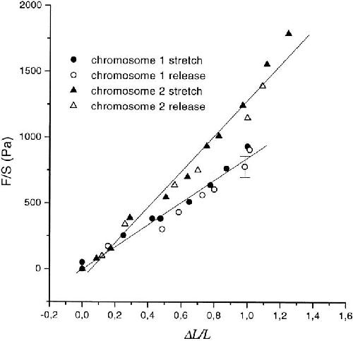 Elasticity and structure of eukaryote chromosomes studied by micromanipulation and micropipette aspiration.
