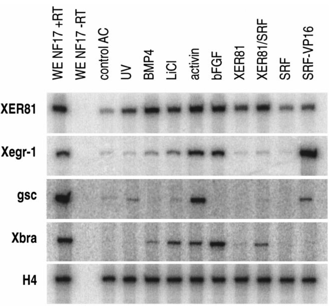 Fig. 4. Modulation of XER81 gene transcription in animal cap explants.