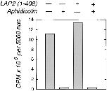 Figure 7. Replication of LAP2-arrested nuclei is aphidicolin-sensitive. Nuclei were assembled for 3 h with or without either LAP2 fragment 1–408 (3.3 μM) or aphidicolin (50 μM), in the presence of α[32P]dCTP. Reactions were digested with proteinase K, run on agarose gels, and label incorporated into high molecular weight DNA was quantitated by PhosphorImager (see Materials and Methods).