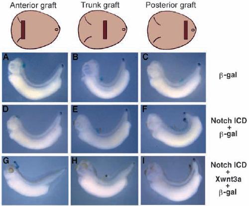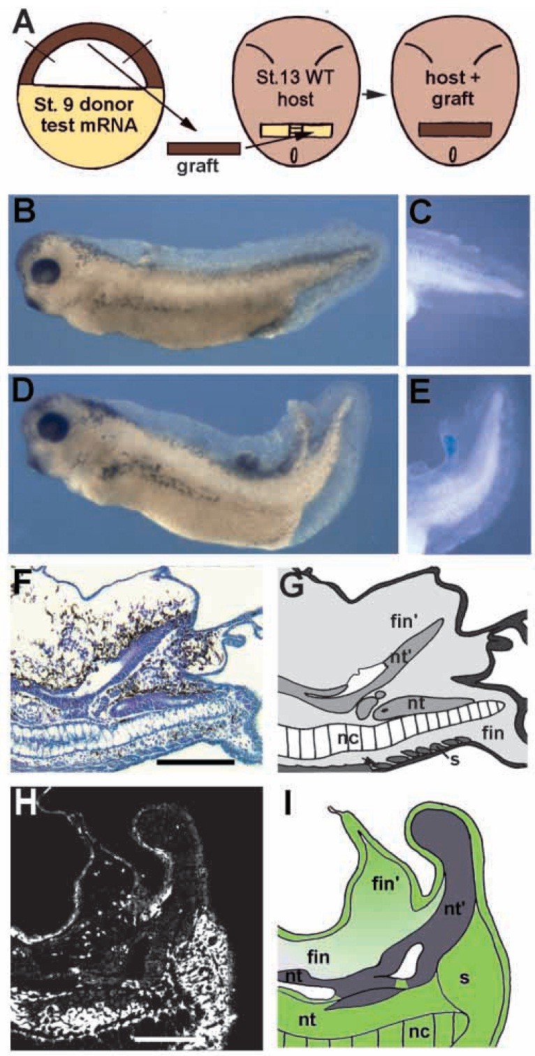 develop an ectopic tail. The X-gal stain shows that grafted tissue