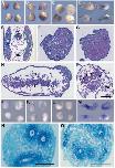 showing poorly differentiated dense tissue. (H,I) Sections through