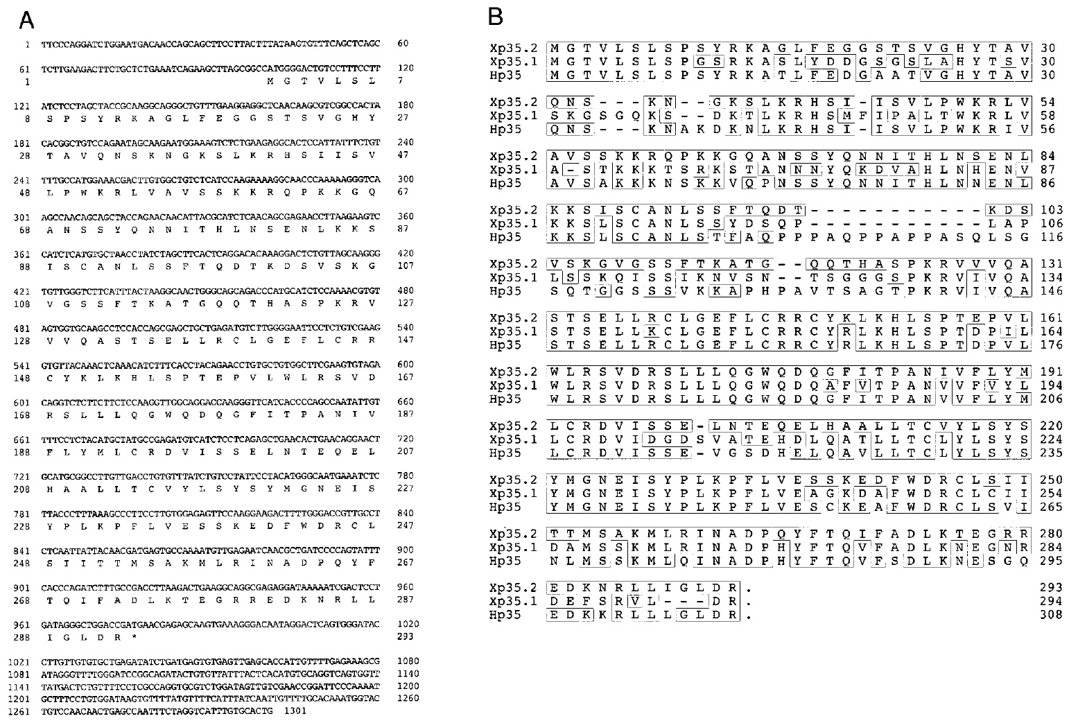 Xp35.2. (B) Sequence alignment between Xp35.2, Xp35.1, the other cloned Xenopus cdk5 kinase activator, and human p35. Note that while
