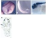 been detected by whole-mount in situ hybridization and then the embryo has been sectioned. Xp35.2 staining is strong in differentiating