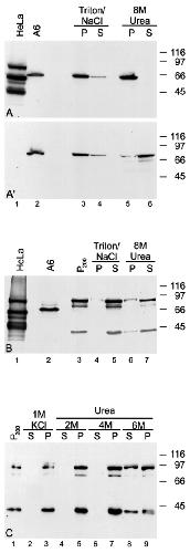 A6 cells were sequentially extracted with 1% Triton, DNase, and 250