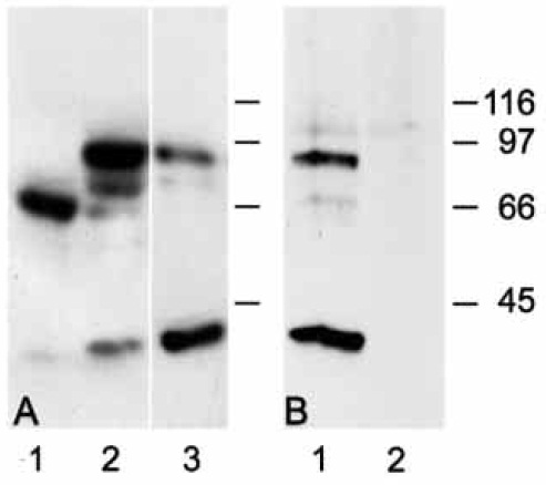 neighbouring lanes in the same SDS-PAGE, and transferred to