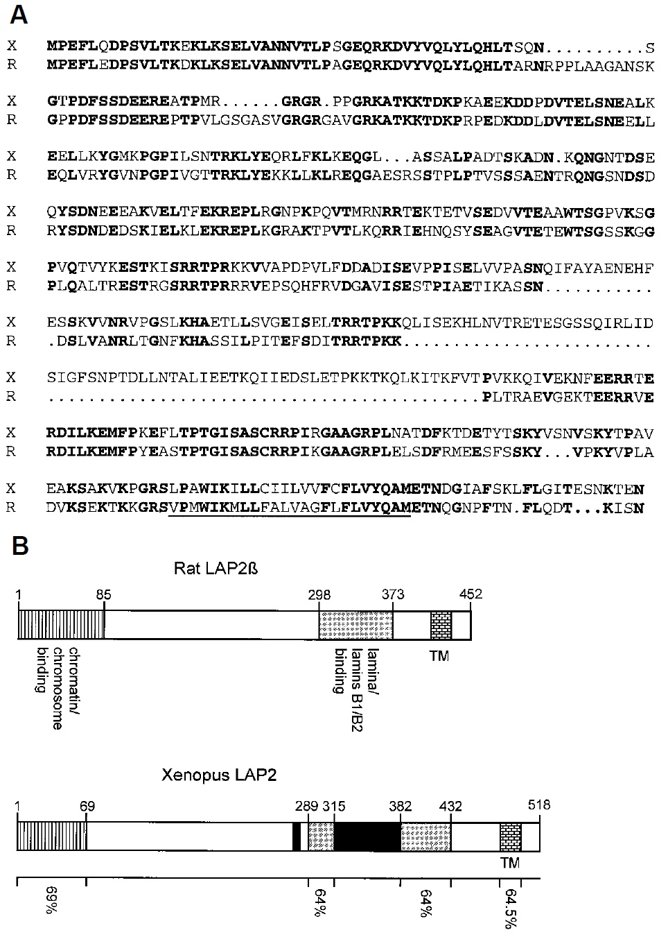 drawings of rat LAP2b and Xenopus LAP2. Domains