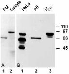 Fig. 3. (A) Total cellular proteins of HeLa cells (HeLa, lane 1),