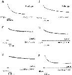 Figure 2. Properties of C-type inactivation with potassium as the conducting ion. Experiments were done in inside-out patches. Current traces were elicited by voltage steps to +50 mV. Except for F, all experiments were performed in the presence of 140 mM internal potassium, and currents were elicited by 10-s voltage steps. Data from the wild-type Shaker channel are shown in A and B, while data from A463C are shown in C–F. (A) The wild-type Shaker channel inactivates with a time constant of 1.4 s in the presence of 2 mM K and 140 mM Na in the external solution. (B) Increasing the external potassium to 140 mM slows C-type inactivation in the wild-type Shaker channel (τ = 2.6 s). (C) C-type inactivation is slow in A463C with 2 mM K and 140 mM Na in the external solutions. Neither increasing the external potassium concentration to 140 mM (D), nor replacing it with external NMG+ (E) has any effect on the time course of C-type inactivation in A463C. However, with 5 mM internal and no external potassium (NMG+), the efflux through the pore is decreased and the A463C channel readily inactivates (F).