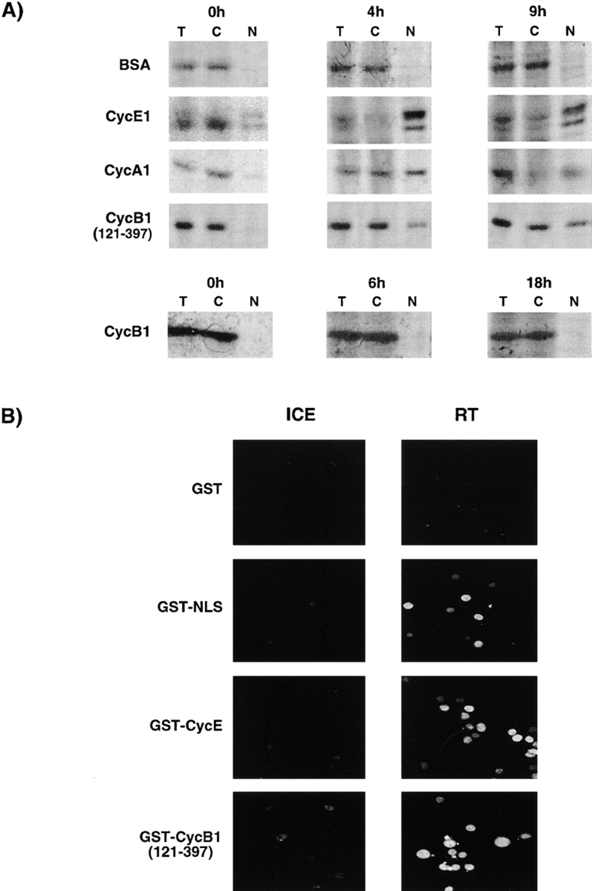 Nuclear import of Cdk/cyclin complexes: identification of distinct mechanisms for import of Cdk2/cyclin E and Cdc2/cyclin B1.