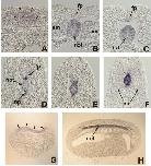 FIG. 5. Transverse or vertical sections of the embryos stained by whole-mount in situ hybridization. Dorsal side is at the top in each figure. (A) Transverse section of stage 12 embryo. Faint signal is localized in the chordal mesoderm (arrowheads). (B, C) Transverse sections of stage 14 and 17 embryos, respectively. Notochord and predicted neural floor plate are stained. (D, E, F) Transverse sections of stage 30 embryo. The middle, anterior, and posterior region of the trunk region. xFRP mRNA is localized in notochord, neural floor plate, and hypochord. Faint signal is also observed in somites. xFRP expression fades in the middle region of notochord (D). (G) Vertical section of stage 12 embryo. Prechordal and chordal mesoderm are clearly stained (arrowheads). (H) Vertical section of stage 22 embryo. xFRP is expressed throughout the notochord. Abbreviations: not, notochord; fp, floor plate; hp, hypochord; sm, somite.