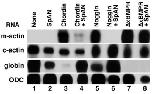and blood-specific aT4-globin. Levels of cytoskeletal actin (c-actin)