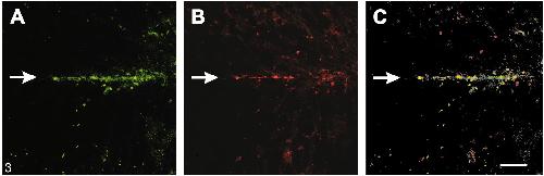 labeled with rhodamineâa-bungarotoxin. (C) Superimposed images from A and B showing colocalized rat agrin and AChR aggregates