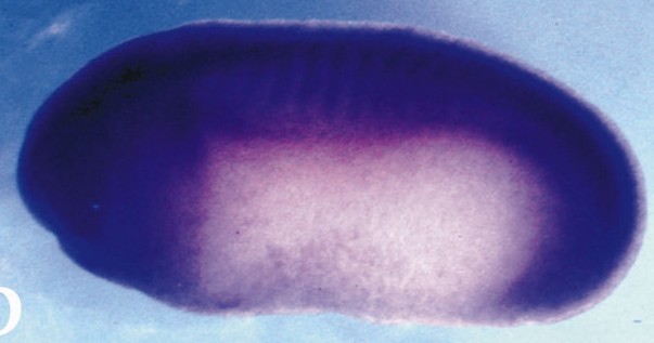adam9 ( ADAM metallopeptidase domain 9 ) gene expression in Xenopus laevis embryo, NF stage 25, as assayed by in situ hybridization, lateral view, anteriorleft, dorsal up.
