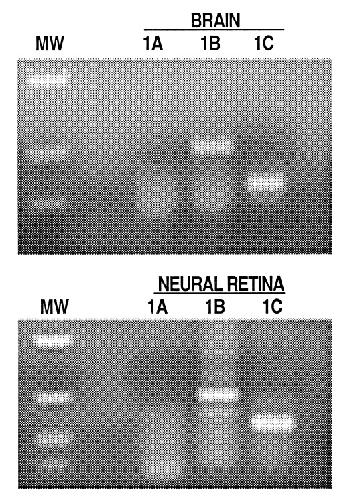 receptor 1A, 1B, and 1C sequences. PCR bands of the predicted size
