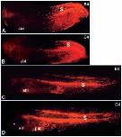 bright red is RDA label. (A,B) B4- and C4-labeled, stage 28-30