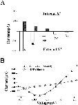 Figure 6. Pore properties of voltage-insensitive 124Q channels. (A) Unidirectional single channel currents measured at +40 mV (Tris Ringer//“X+” EGTA, shaded histograms) and at −40 mV (“X+” Ringer//Tris EGTA, open histograms). The histograms show the following permeability sequence: K+ > Rb+ > NH4+ > Cs+ and Na+. (B) 124Q channels are sensitive to block by 4-AP. I–V data points from one representative oocyte using two-electrode voltage clamp. Macroscopic current seen in 115-mM external K+ solution (▴) appears effectively blocked after addition of 10 mM 4-AP to the bath solution (○).