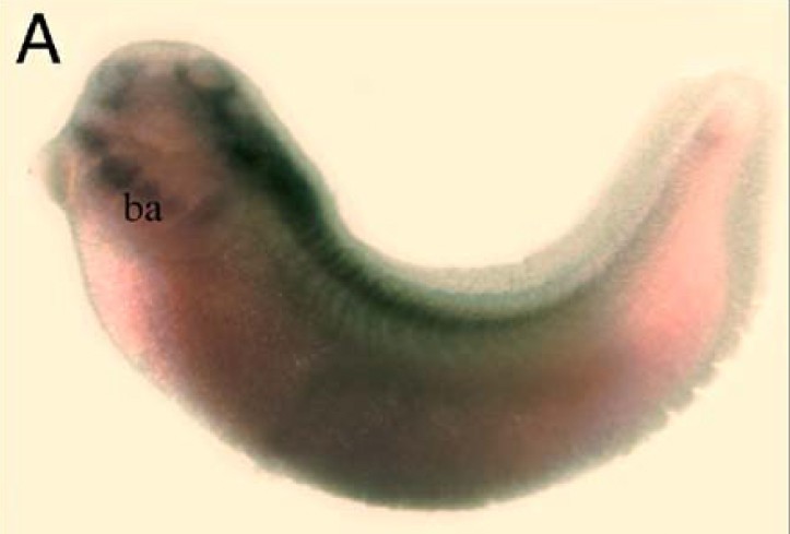 Key: arrow points to telencephalon; arrowhead to expression in the spinal cord floor plate.