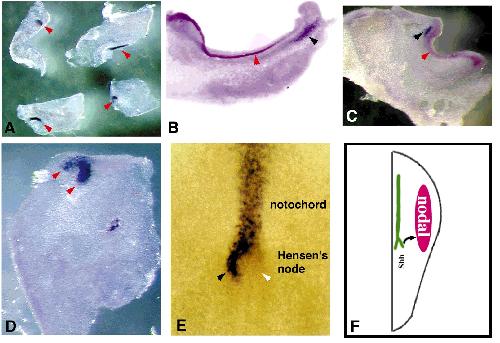 contrast to endogenous w.t. expression (E), where Shh is expressed only on the left side of Hensen’s node. F. These results are consistent with