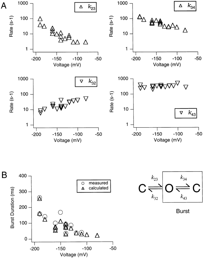 Magleby, Burst kinetics of single calcium-activated potassium channels in cultured rat muscle. 1983, Pubmed