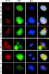 Figure 8. Xmad1 localized to unattached kinetochores during mitosis. Asynchronously growing XTC cells (A–E) or cells treated with nocodazole (F) were fixed in 3% paraformaldehyde and stained with affinity-purified mouse anti-Xmad1 and rabbit anti-Xmad2 antibodies as indicated on top. Texas red– conjugated anti–mouse and fluorescein-conjugated anti– rabbit IgG antibodies were used as secondary antibodies. The nuclei were viewed by staining with the DNA-binding dye Hoechst 33258 (DNA). The merges of all three fluorochromes are also shown (All). The cell cycle stages were determined by the morphology of the cell and its chromosomes. A, interphase; B, prophase; C, prometaphase; D, metaphase; E, anaphase; F, a nocodazole-arrested cell. Representative pictures of each cell type are shown.