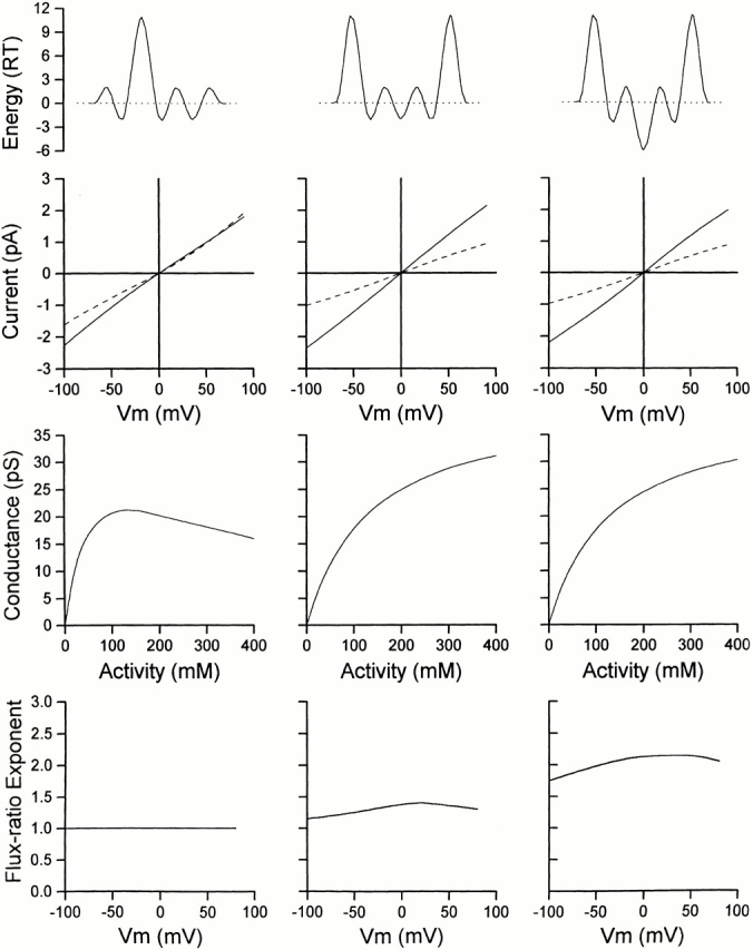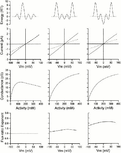 permeation model characterized by the zero-voltage free energy barrier profile at the top. In