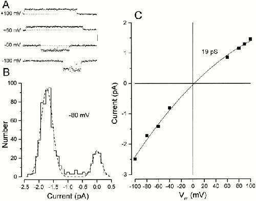fit to the data with a maximum of 32 pS and a half-maximal activity