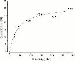 in parentheses, except at the lowest K activity, where the two symbols represent individual patches. (line) A rectangular hyperbola