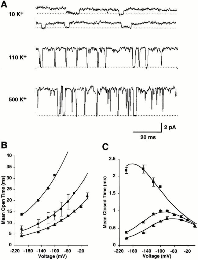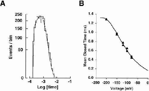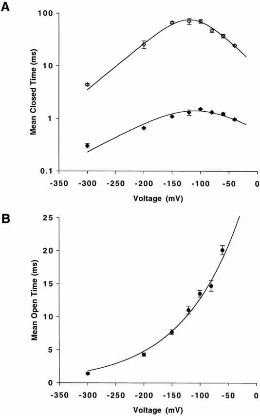 Figure 2. Voltage dependence of mean closed and open time.