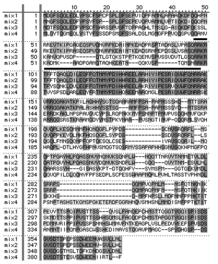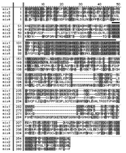 FIG. 2. Sequence analysis of the Mix family of homeoproteins.