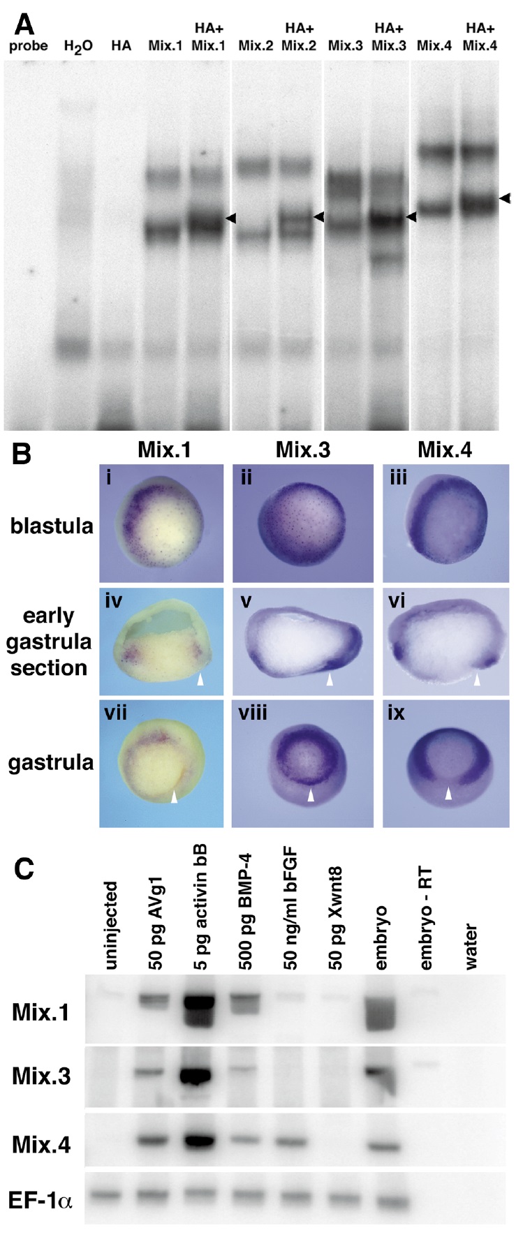 the Mix family of homeoproteins. (Top, i–iii) Vegetal view of blastula