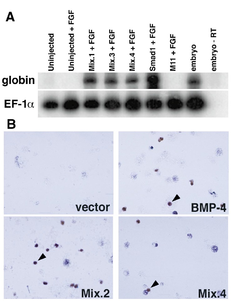 (B) Mix genes induce erythroid cells in animal pole explants. Embryos