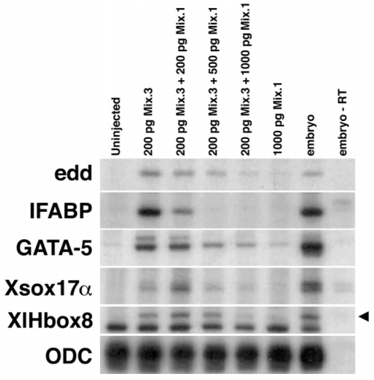 FIG. 7. Mix.1 antagonizes Mix.3 induction of endoderm markers.