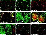 localizes in the cytoplasm in an apparent association with intracellular vesicles (Texas Red phalloidin labels the cell cortex). (B) In